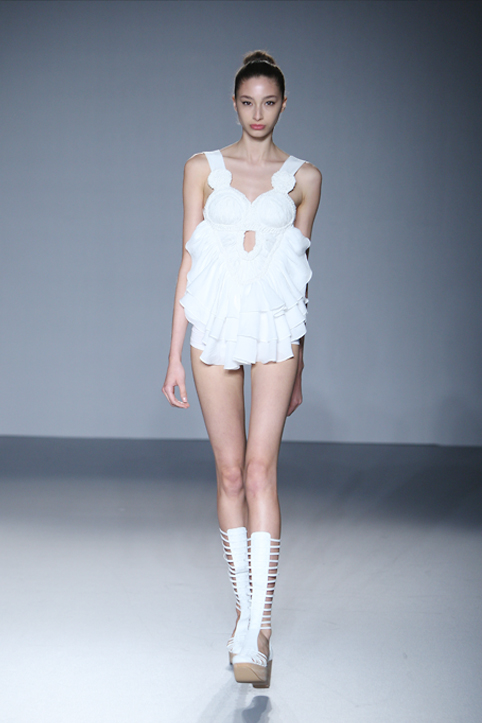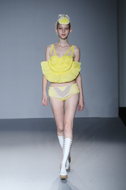 남성복과 여성복이 동시에 전개되는 Steve Yoni Studio의 의상은 괴짜들의 옷차림이 자연스럽게 어울리는 런던의 길거리 문화를 고스란히 표현하고 있습니다. 문화의 이종 교배를 자유롭게 구사하며 역동적인 아이디어를 선보이지만 보수적인 테일러링의 기본 원칙만큼은 충실히 지키고 있는 컬렉션은 SCM 출신들의 일관된 파격과는 다소 거리가 있어 오히려 신선감을 불러 일으켰다고 합니다.