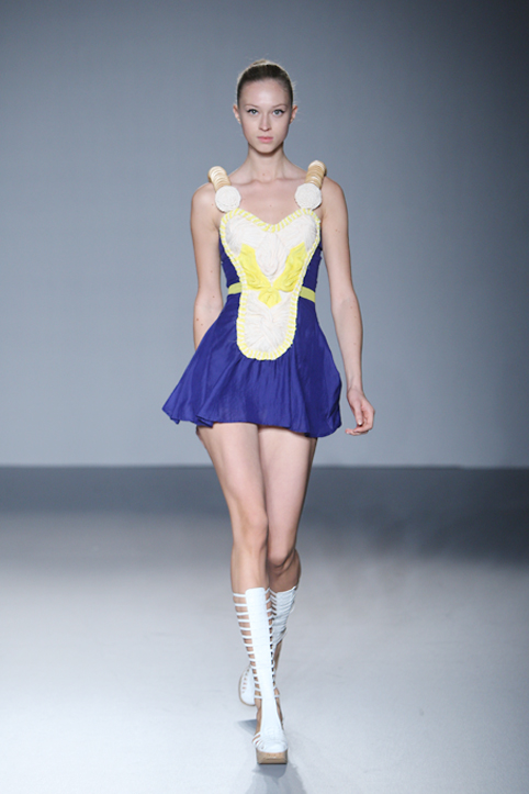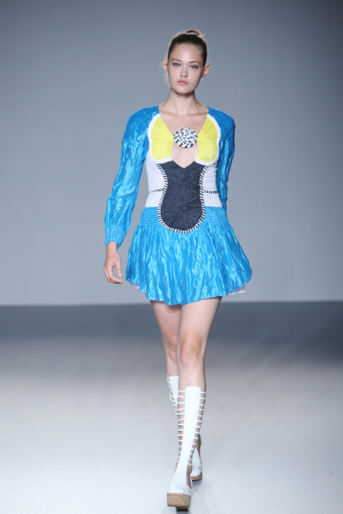 남성복과 여성복이 동시에 전개되는 Steve Yoni Studio의 의상은 괴짜들의 옷차림이 자연스럽게 어울리는 런던의 길거리 문화를 고스란히 표현하고 있습니다. 문화의 이종 교배를 자유롭게 구사하며 역동적인 아이디어를 선보이지만 보수적인 테일러링의 기본 원칙만큼은 충실히 지키고 있는 컬렉션은 SCM 출신들의 일관된 파격과는 다소 거리가 있어 오히려 신선감을 불러 일으켰다고 합니다.